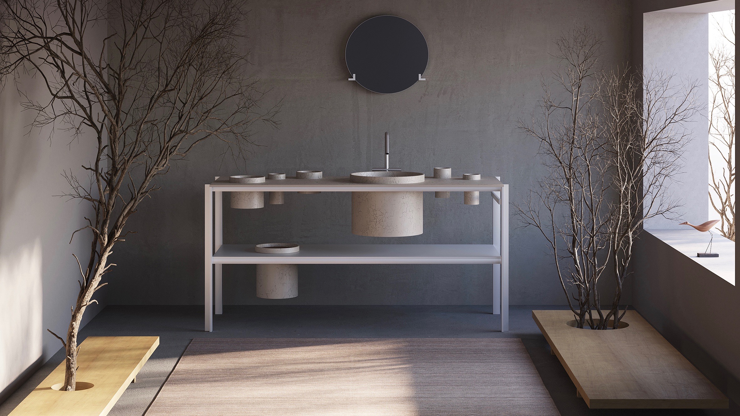 La collezione Lune nasce dal desiderio di riportare un frammento di magia nella nostra vita quotidiana. Una serie di crateri di materia plasmata a mano che penetrano un piano anch’esso di ceramica da poter toccare oltre che ammirare.