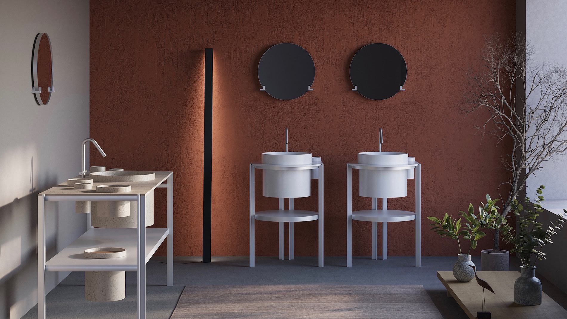 Lune è una collezione bagno estremamente versatile, ogni singolo accessorio ha una sua funzione e può essere fornito in varie finiture. L’elemento principale del lavabo ospita al suo interno una calotta semisferica che rimanda alla convessità del satellite e nello stesso tempo occulta la piletta di scarico dell’acqua. Lune è prevista in Quattro dimensioni: modulo L166xP60xH85cm, modulo L126xP60xH85cm, modulo L96xP60xH85cm, modulo L57xP57xH85cm.