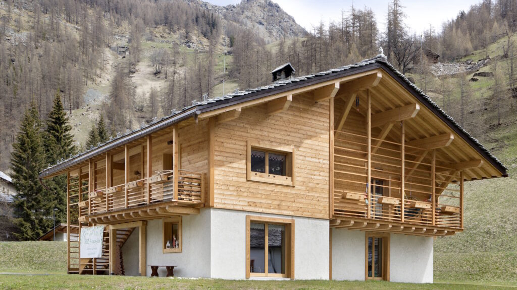 Sulle montagne della Valle d’Aosta sorge il B&B Alchemilla, un edificio immerso nella natura a 1.630 m. Tiziana Monterisi si è occupata della progettazione del B&B seguendo la filosofia della bio-architettura e utilizzando i materiali naturali Ricehouse. Il B&B Alchemilla è una struttura ricettiva a energia zero: l’architettura non emette anidride carbonica, ma la compensa mediante l’uso di materiali biocompostabili e biodegradabili che arrivati a fine vita non andranno ad impattare sull’ambiente.