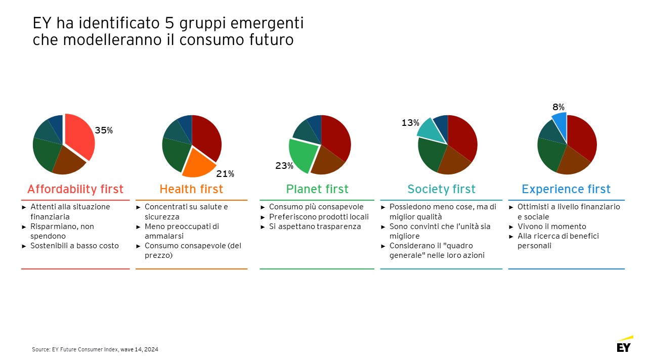 Commenta Stefano Vittucci, Consumer Products and Retail Sector leader di EY in Italia: «L’EY Future Consumer Index ha evidenziato diversi temi significativi che riflettono il cambiamento in corso nei comportamenti dei consumatori italiani. Innanzitutto il sentimento dei consumatori si esprime in un cauto ottimismo, il 23% prevede un miglioramento della propria situazione economica nei prossimi tre anni, anche in presenza di persistenti pressioni economiche. Le spese dei consumatori sono impattate ancora da incertezze economiche, dagli effetti inflattivi e impatti climatici. Molte aziende, quindi, stanno implementando azioni sui prezzi, rivisitazioni del portafoglio prodotti e iniziative di produttività. Inoltre, l’influenza digitale è in aumento: il 33% segue regolarmente influencer sui social media, e il 51% si affida a loro per le scelte di acquisto. La proliferazione dei canali di vendita sta rendendo più frammentata l’esperienza di consumo e diventa fondamentale rivedere le strategie di marketing. Infine, sempre più rilevanza acquista la gestione dei dati che può portare significativi vantaggi nella relazione con i consumatori, i quali mostrano disponibilità a scambiare informazioni personali in cambio di esperienze sempre più personalizzate».