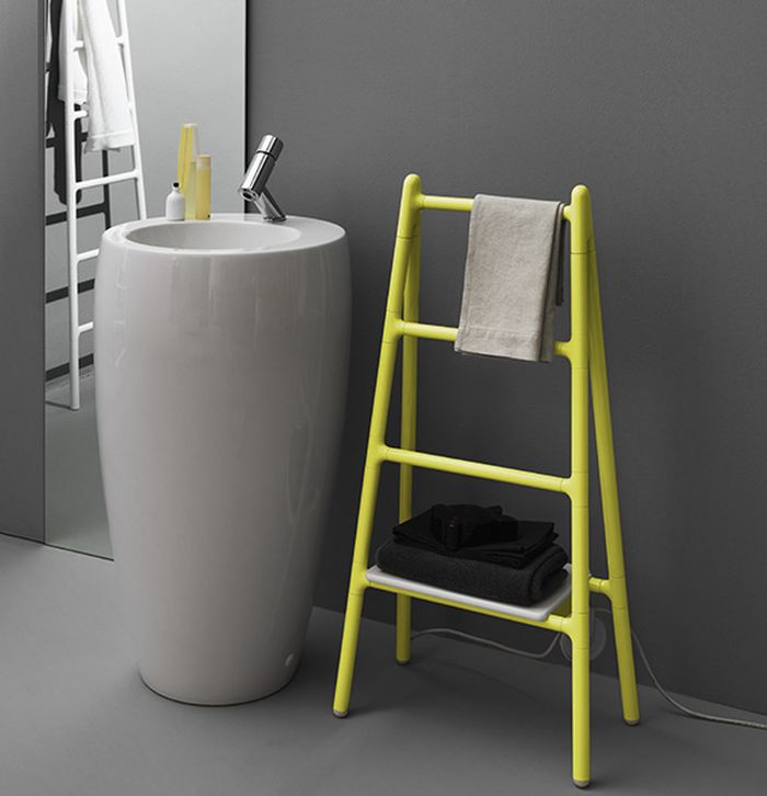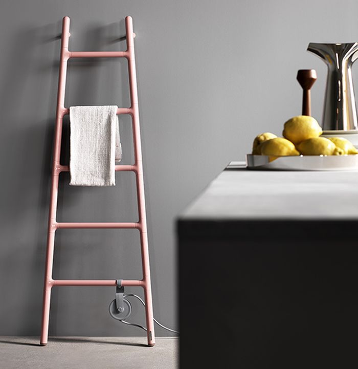 Scaletta offre infatti libertà di posizionamento in tutti gli ambienti della casa: dal bagno alla cucina, dalla zona living alla zona notte. Inoltre, non necessitando di una installazione, si presta a cambiare collocazione nella casa e anche ad essere trasferito ad ogni cambio di abitazione. 1 Scaletta TubesScaletta è proposto con alimentazione elettrica, è realizzato in alluminio in un’ampia gamma di colori Tubes ed è disponibile in due versioni: a parete (in due altezze differenti) e a terra freestanding, entrambe dotate di una carrucola che avvolge il cavo elettrico. La versione a terra può essere accessoriata di un pratico piano d’appoggio.