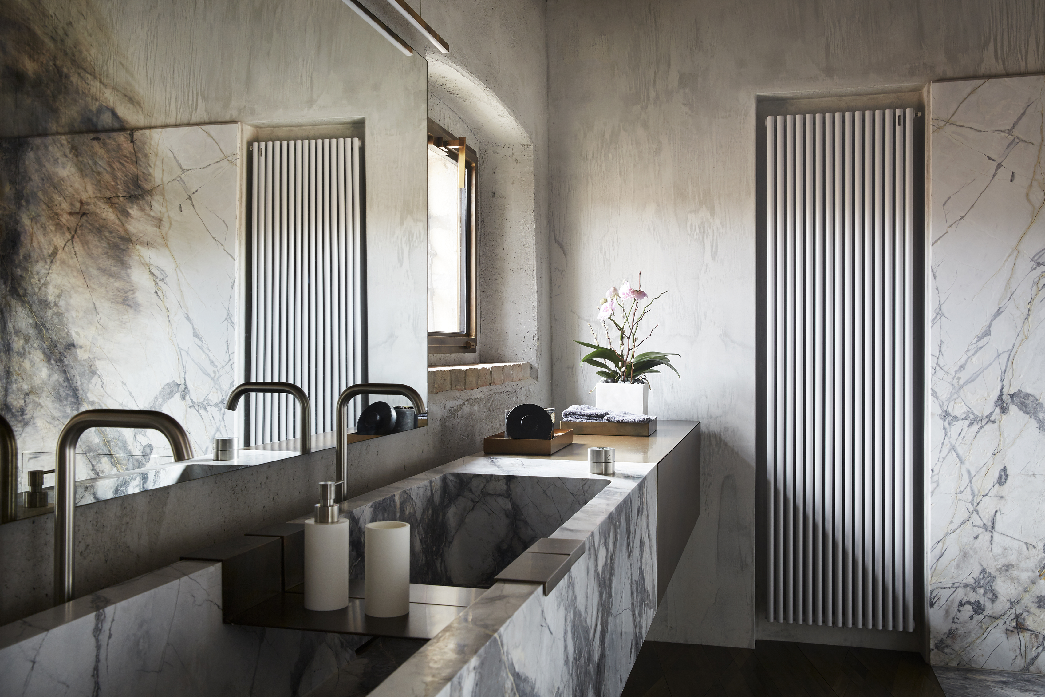 L’Architetto Castagna ha selezionato Tubes in quanto ha saputo trovare una soluzione su misura per le esigenze del committente. L’idea era di avere un calorifero tubolare doppio senza le valvole a vista. Un calorifero che, nella sua semplicità, si potesse sposare con l’ambientazione ricercata e ricca di particolari.