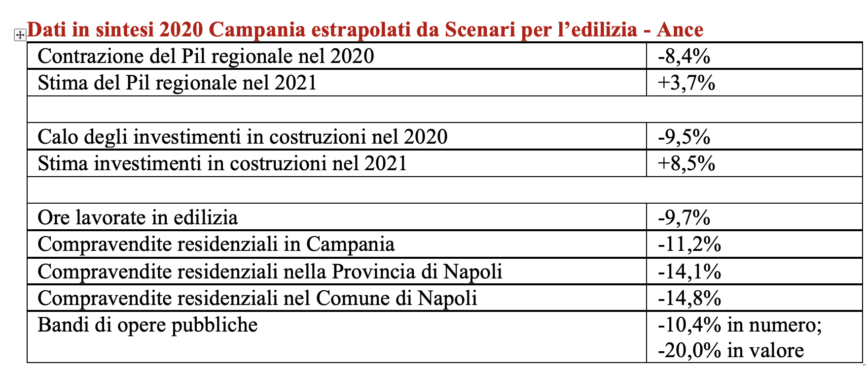 «Per il corretto utilizzo dei fondi previsti nel Recovery Plan e per il rilancio del settore delle costruzioni è imprescindibile l’obiettivo della sburocratizzazione attraverso la semplificazione. In tal senso sono indispensabili almeno due riforme: quella della Pubblica amministrazione e quella della Giustizia” ha aggiunto Gennaro Vitale, presidente dell’Ance Campania.
