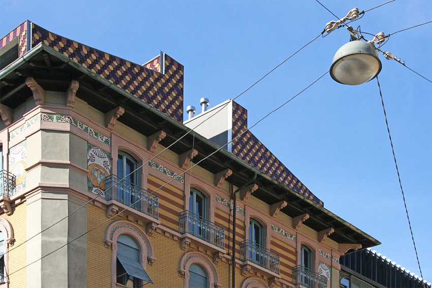 Da qui è derivata la scelta di assumere il partito decorativo e i materiali tipici dell’edificio sottostante come matrice, anche cromatica, del rivestimento delle pareti e del tetto del nuovo volume.