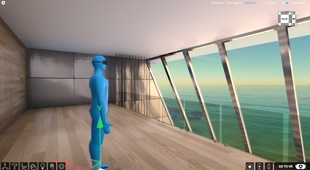 La qualità della percezione spaziale è ottima e tramite visore Htc Vive o Oculus Rift non è necessario attendere l’elaborazione delle immagini, dato che un motore grafico l’ effettua all’istante; caratteristiche che permette di far cambiare l’ora del giorno per validare le scelte progettuali, rimanendo immersi nel progetto.