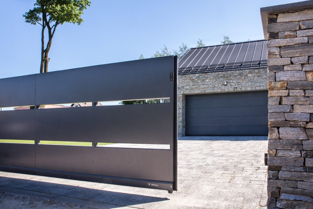 Il modello Modern AW.10.110 scelto per questo progetto, garantisce molta privacy. E’ compatto e resistente e si integra perfettamente con il muretto dicinta realizzato in pietra a vista senza creare alcun contrasto.