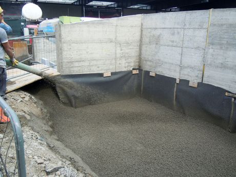 L’intervento, che ha comportato la fornitura di circa 150 metri cubi di prodotto, ha previsto innanzitutto la posa, fra terreno e il rilevato di argilla, di un tessuto non tessuto con funzione anticontaminante. La fase successiva è stata il pompaggio dell’impasto: il materiale secco giunto in cantiere in autocisterne veniva pompato verso il sito di costruzione del rilevato; nell’ultimo tratto del tubo di pompaggio si inseriva il condotto proveniente dall’impianto di produzione della boiacca, che veniva quindi mescolata all’argilla producendo il conglomerato finale.