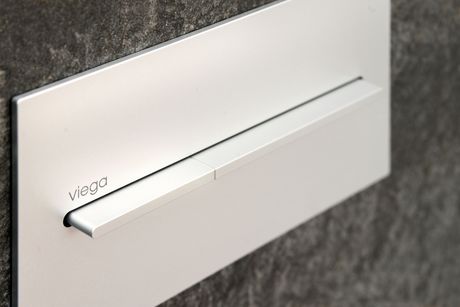 In onore al gusto raffinato e a un design essenziale e pulito, oltre che alla facilità d’uso e alla ricerca del massimo grado di igiene, l’architetto ha scelto per il bagno le placche di comando Viega Visign, in abbinamento alle cassette di risciacquo Viega Mono Tec e Viega Mono Slim, rispettivamente per sanitari sospesi o da appoggio. Placche in cui, oltre all’estetica, convincono anche la massima affidabilità e la tecnologia.