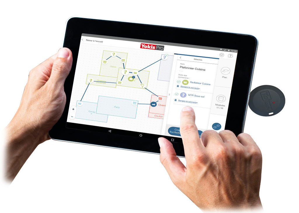 Yokis Pro è il risultato di una costante ricerca di soluzioni pratiche e performanti per soddisfare le esigenze dei professionisti del settore; è la chiave per realizzare in modo semplice gli impianti radio. L’interfaccia usb radio Yokey permette all’app Yokis Pro di dialogare con i moduli radio, agevolando il professionista nella configurazione dell’impianto di domotica direttamente da tablet, in pochi passaggi.