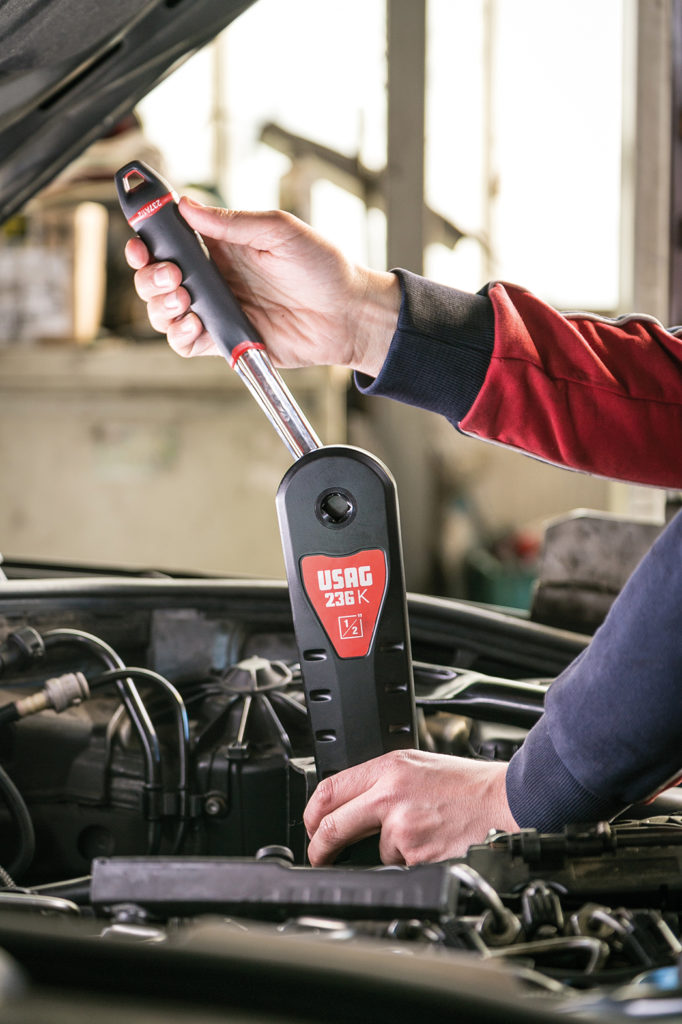 La nuova prolunga a catena 236 K serve per facilitare le manovre di avvitatura e svitatura in ambiti di scarsa accessibilità, permettendo di raggiungere posti con poca possibilità di manovra. Trova applicazione sia in ambito automotive che industria e può essere usata sia con un cricchetto manuale che con un avvitatore pneumatico. Se usata con un cricchetto, non solo garantisce un maggior spazio di manovra, ma moltiplica i giri in uscita fino a 1,6 volte. Se usata con un avvitatore pneumatico – come ad esempio il modello USAG 943 PC1 – permette di effettuare interventi in spazi ristretti aumentandone la frequenza degli impulsi al minuto del 20%. Il corpo della prolunga a catena è in alluminio con un attacco quadro femmina e un attacco quadro maschio. Le dimensioni sono molto ridotte: la testa è alta 39 mm, come un cricchetto da 1/2”.