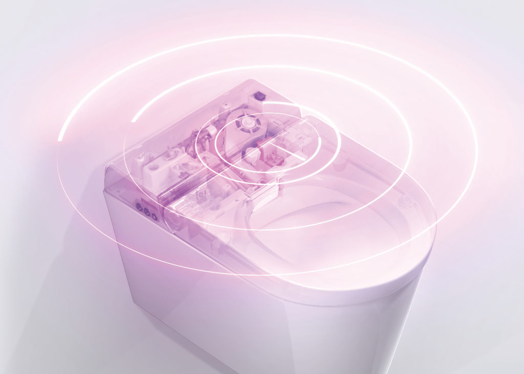 Hygea, infatti, incarna un nuovo concetto di bagno: il modulo bidet elettronico viene inserito nel sanitario dall’alto ed è completamente scollegato dal suo involucro e dal sedile.
