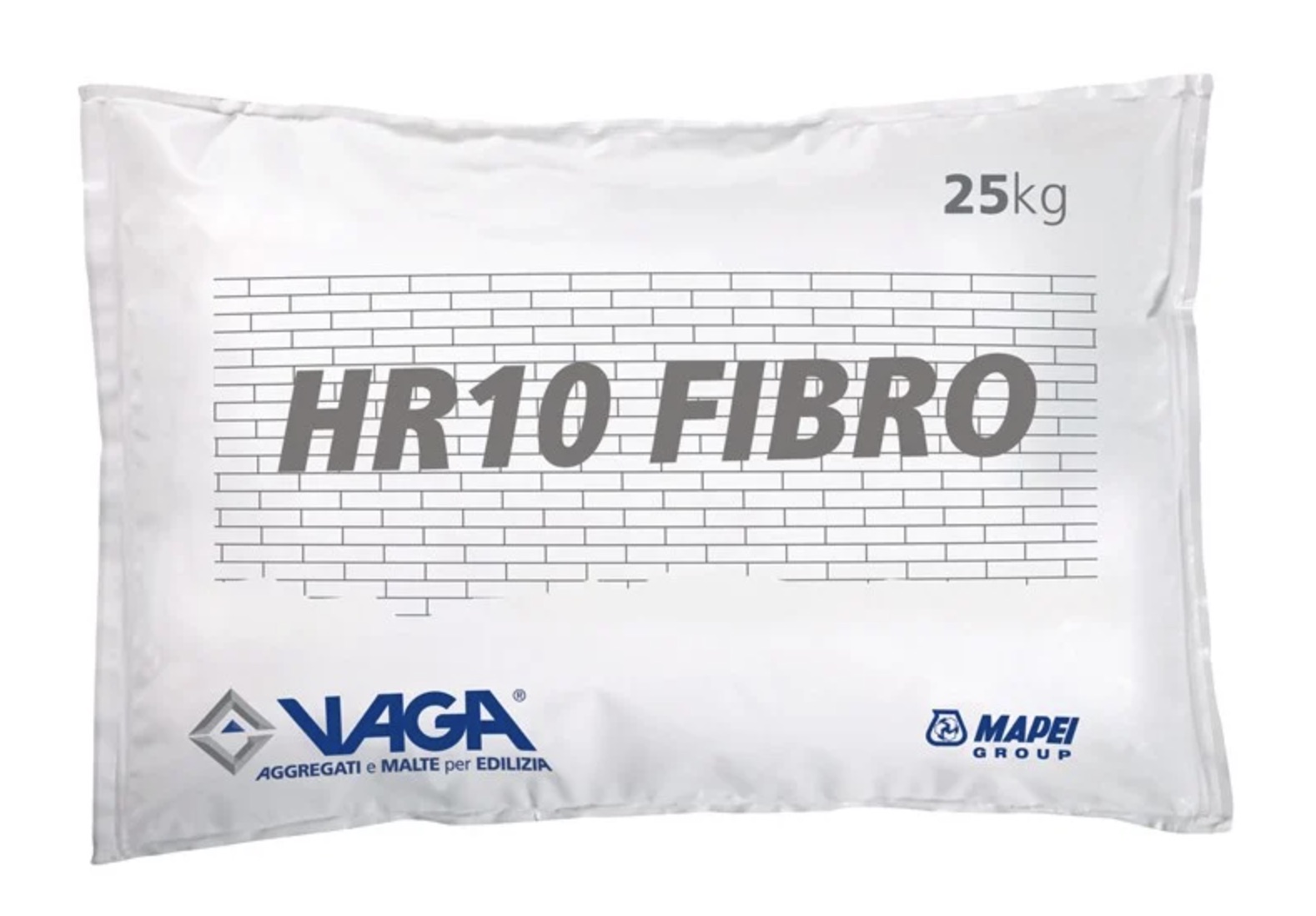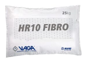 Prodotta da Vaga, HR10 Fibro è una malta cementizia da intonaco antistrappo che, nata nei laboratori di Ricerca & Sviluppo Mapei, grazie alle sue particolari prestazioni meccaniche è particolarmente adatta per la realizzazione di intonaci e di rivestimenti murari specifici per l’incollaggio delle piastrelle, sia in ambiente interno che esterno, in conformità alla norma Uni 11493 ed è indicata anche per l’applicazione a macchina.