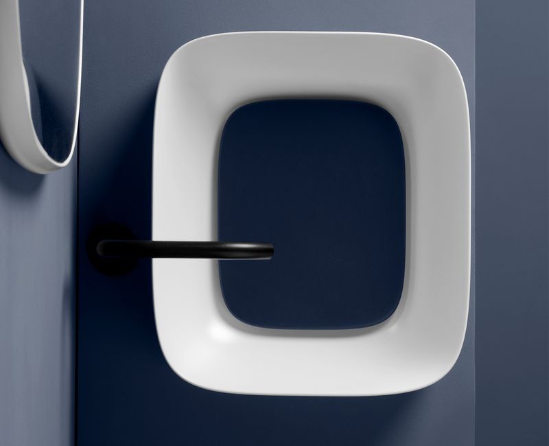 L’aspetto peculiare del progetto è l’introduzione di un gioco cromatico: la parte interna può essere realizzata in un’altra tonalità, per un lavabo bicolore, e finitura rispetto al volume del lavabo, per inediti abbinamenti e particolari effetti materici di lucentezza e opacità. La linea Acquerello è disegnata da Prospero Rasulo.