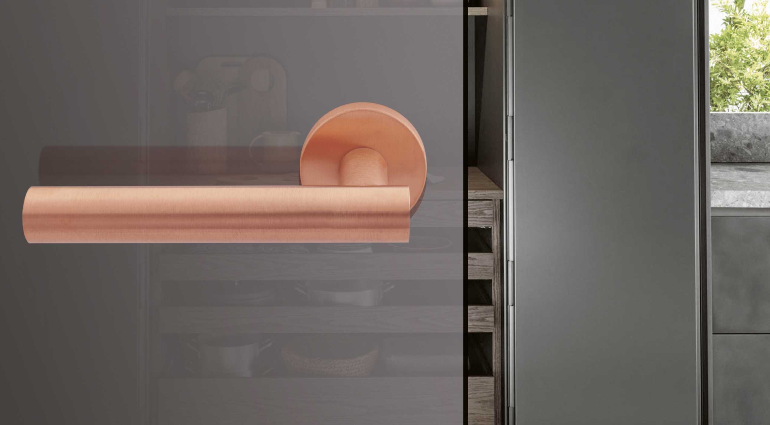 Il rame è il grande protagonista di questa nuova collezione firmata dai designer del Valli&Valli. Innanzitutto, lavorando sulla sua duttilità per ottenere un design essenziale e pulito; sfruttando le sue naturali proprietà antimicrobiche per creare un prodotto capace di ridurre la contaminazione batterica; infine, “giocando” sul naturale fenomeno di ossidazione di questo materiale (la maniglia non viene infatti verniciata).