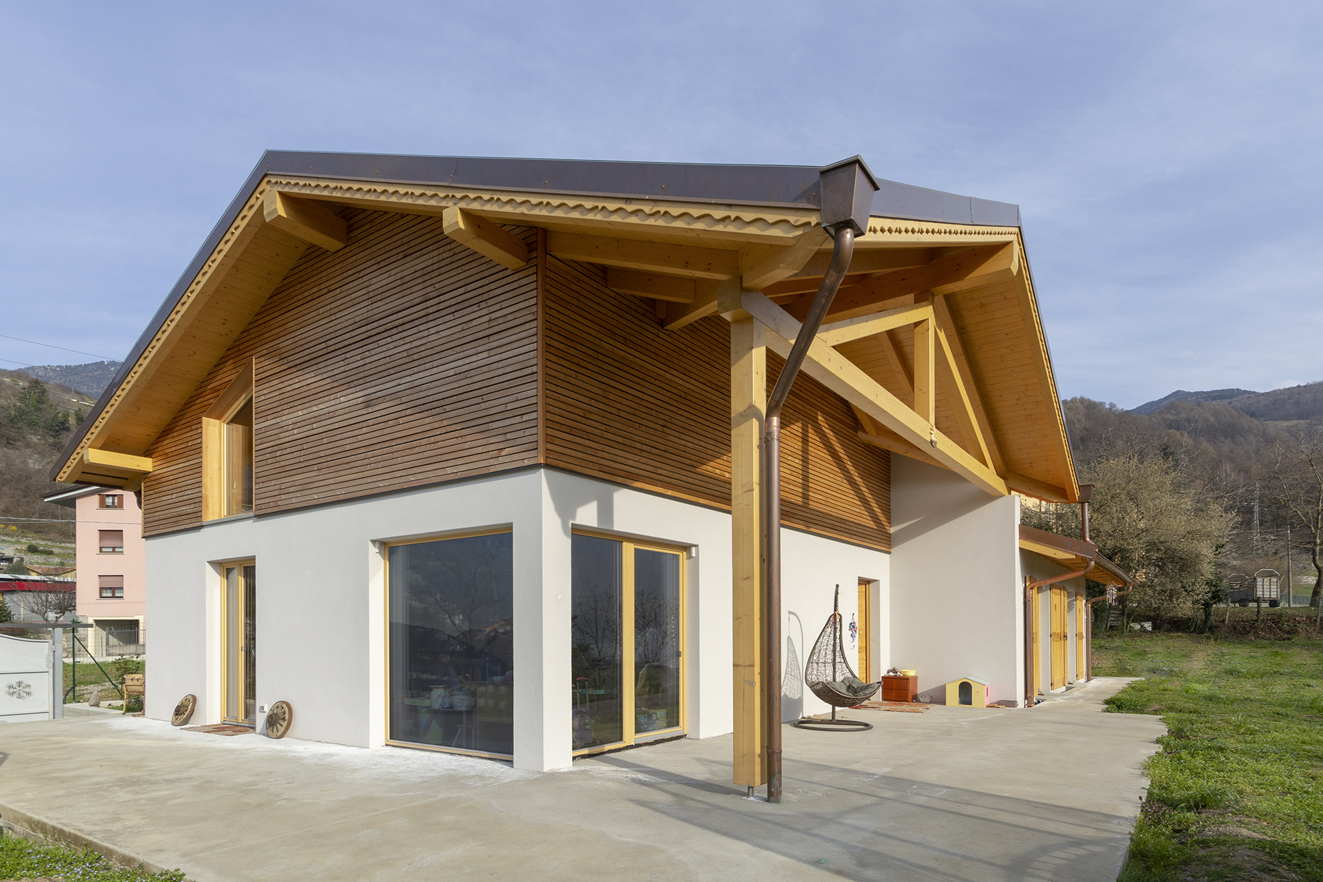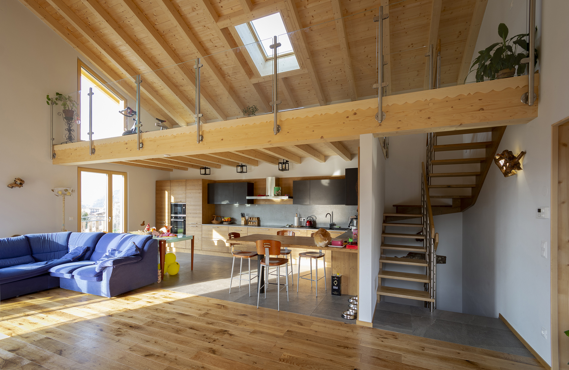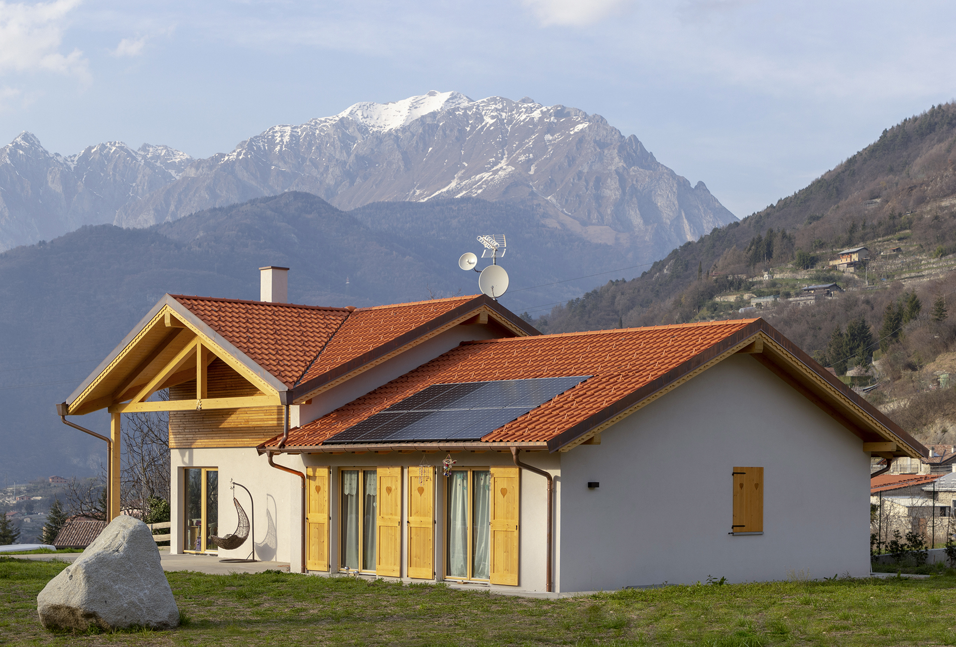 Vario Haus ha realizzato a Bienno (Bs) una casa prefabbricata in legno a telaio in soli 4 mesi. Una villa monofamiliare di 150 mq, su un solo livello, caratterizzata da una zona soppalcata che si sviluppa sopra la cucina e si apre sulla zona giorno.