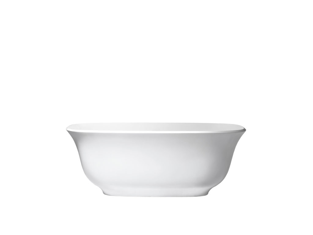 La verniciatura esterna contrasta con l’interno bianco del Quarrycast, materiale brevettato, composto da un mix di Volcanic Limestone e resina.