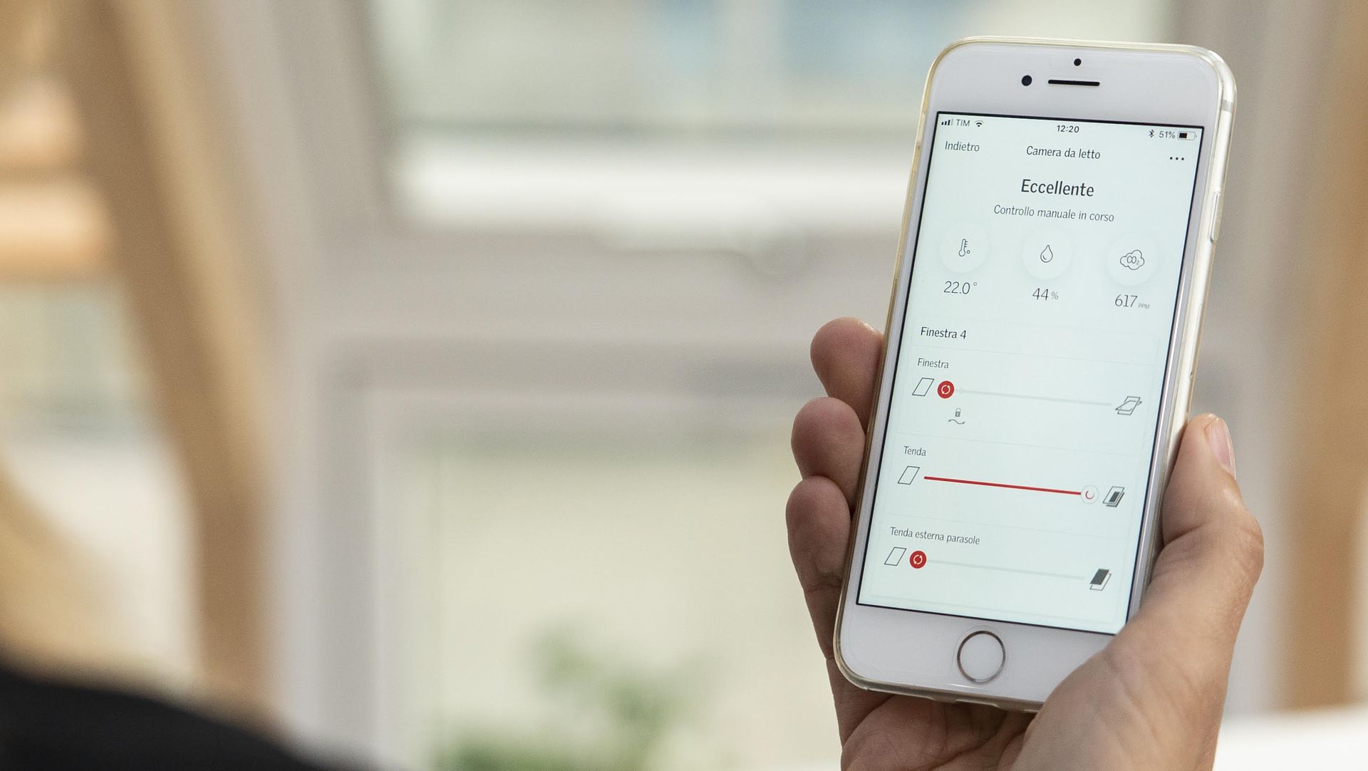 Velux App Control ti permette di aprire e chiudere finestre, tende e tapparelle VELUX con un semplice comando vocale o con un tocco dello smartphone. In qualsiasi momento può esser fatto l’upgrade a Velux Active with Netatmo. Basta aggiungere il sensore interno che rileva temperatura, umidità e Co2