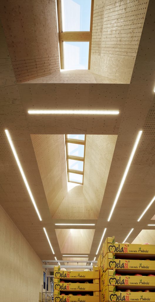 Situato nel cuore delle Valli del Noce, territorio di riferimento per la melicoltura trentina, l’edificio coniuga funzionalità operativa, innovazione tecnologica e attenzione al benessere delle persone.