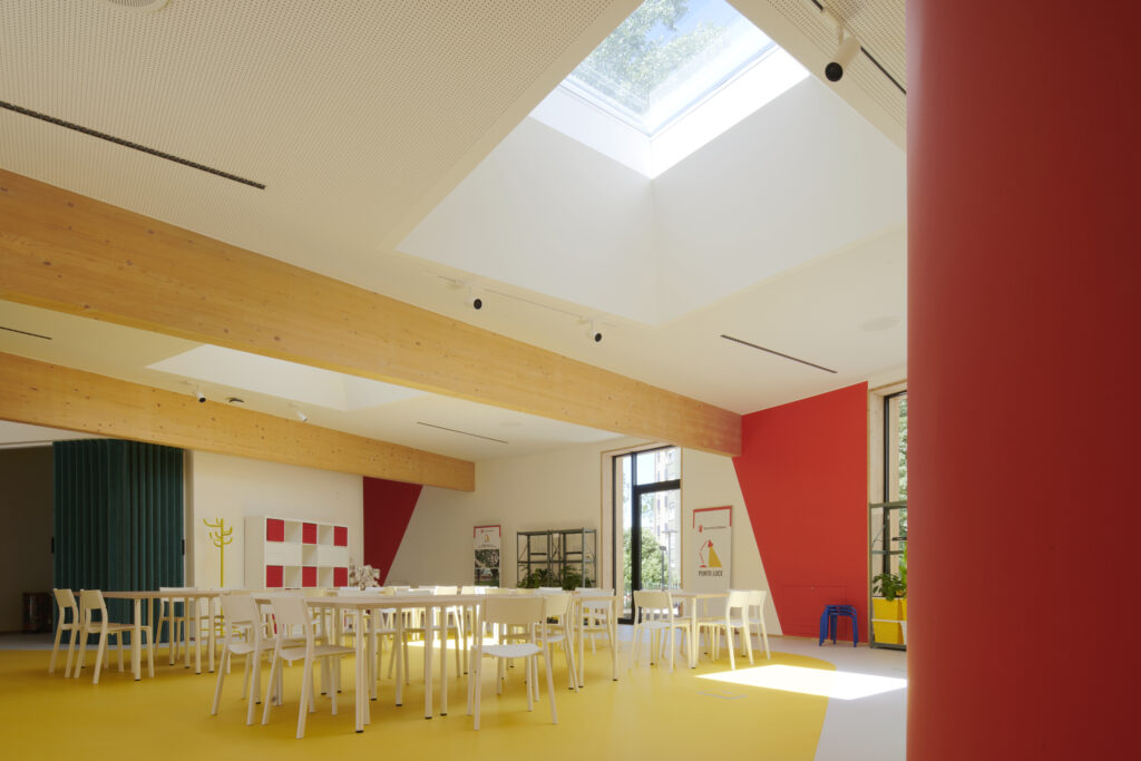 L’architettura, fortemente relazionata al tema della trasparenza e dell’apertura, interpreta il concetto di “Punto Luce” non solo in senso simbolico, ma anche funzionale, trasformando la luce in uno strumento educativo. La realizzazione rappresenta un esempio concreto di rigenerazione urbana sostenibile, in cui la sinergia tra terzo settore, impresa privata e progettazione consapevole ha reso possibile la trasformazione di uno spazio abbandonato in un centro vitale, inclusivo e orientato al futuro