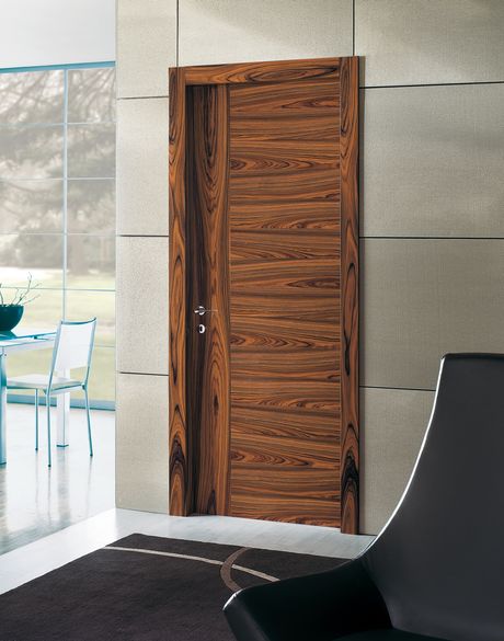 Nelle porte in palissandro della Linea Plane di Tondin le venature del legno sono le vere protagoniste. Il modello Elegance è caratterizzato da un gioco verticale e orizzontale delle venature del legno.