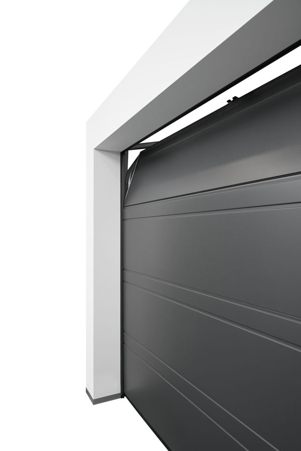 Per far sì che, nel corso di tale fase, non entrino in garage ospiti indesiderati, Hörmann mette a disposizione come optional anche i supporti ribaltabili per ruote: tali tecnologie fanno in modo che, durante la ventilazione, si apra solo l’elemento superiore del manto e che la base resti al contrario chiusa aderente al pavimento. Ulteriori performance tecniche delle nuove automazioni Hörmann.
