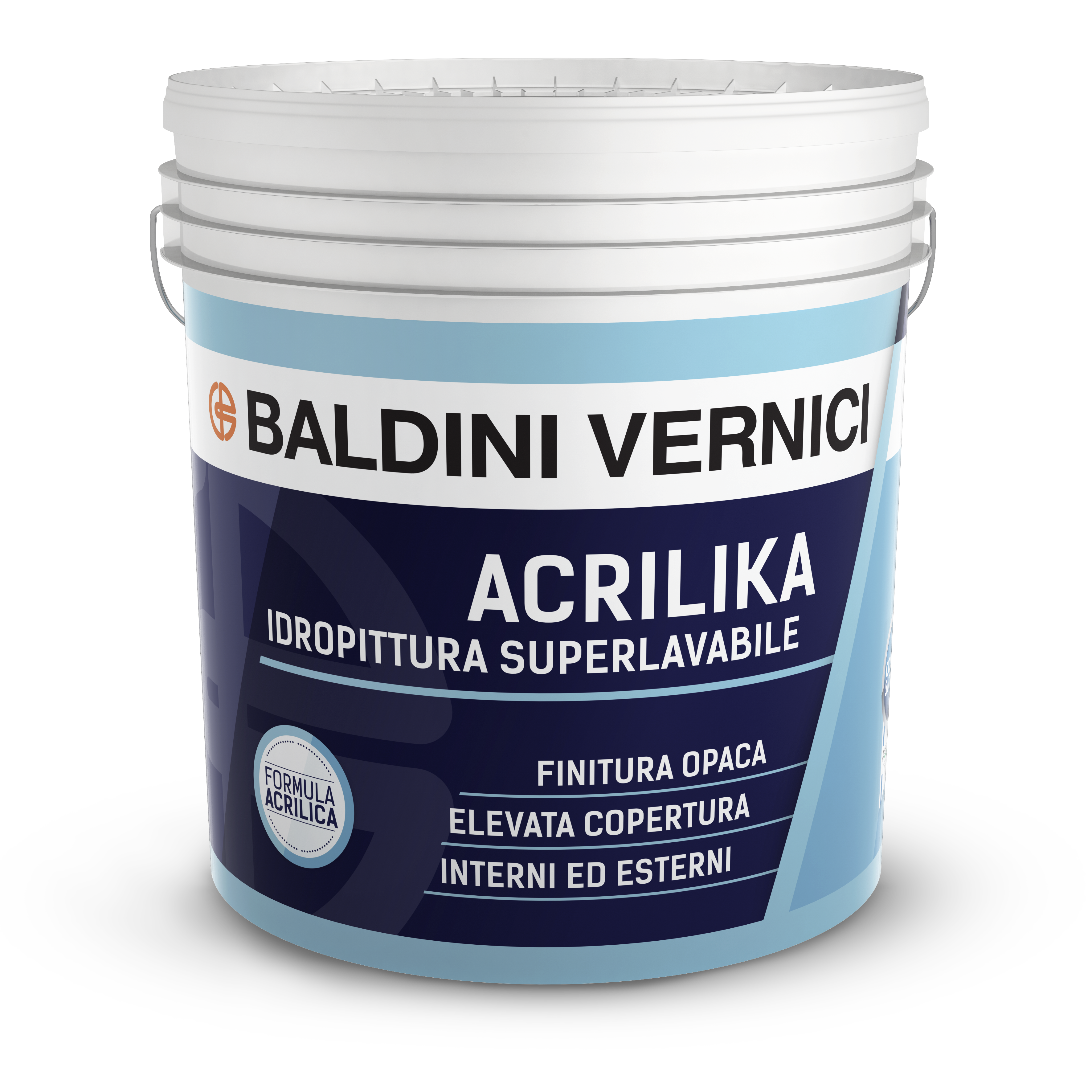 Acrilika è la nuova idropittura superlavabile di Baldini Vernici, con formulazione a base di resine acriliche in dispersione acquosa, pigmenti e cariche coprenti che la rendono il prodotto ideale per utilizzo in interno e anche in esterno. La finitura opaca e vellutata e un elevato potere coprente garantiscono risultati estetici di pregio. Colorabile con il sistema tintometrico Baldini Tecnicolor, può soddisfare i più disparati desideri in tema di scelta cromatica.