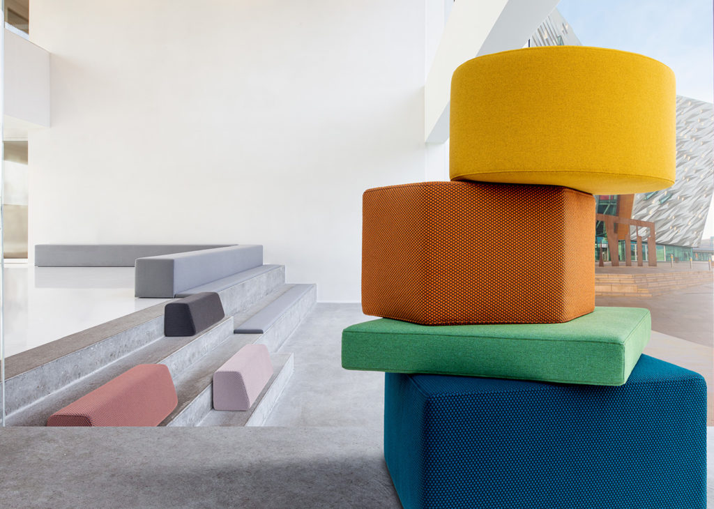 Il tessuto per arredamento Rolla è invececaratterizzato da un originale pattern architettonico. Nonostante presenti una texture tridimensionale, il motivo geometrico che lo caratterizza è altamente resistente all’usura. Rolla è disponibile in 20 moderne tonalità, che vanno dai grigi neutri al blu, rosa e arancione. I colori di Rolla possono integrarsi con quelli di Acton e si combinano facilmente, anche se utilizzati su uno stesso complemento d’arredo.