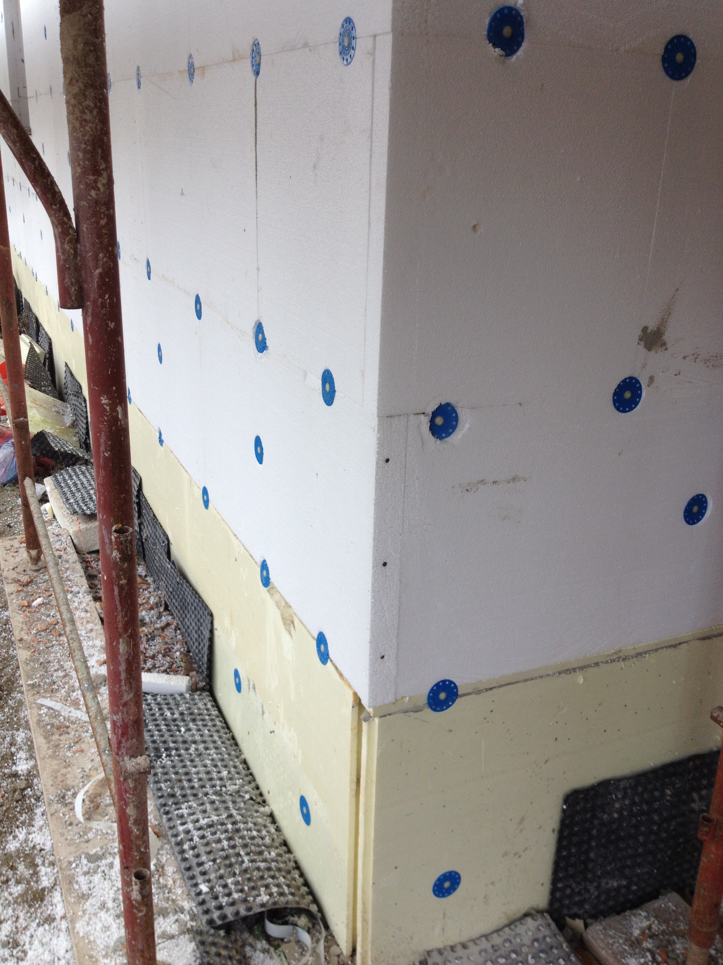 I balconi, costituiti da solette prefabbricate in cemento armato dello spessore di 5 cm oltre a 10 cm di getto integrativo ,sono stati successivamente rivestiti con isolante Xps da 5 cm con finitura a cappotto nelle parti a vista.