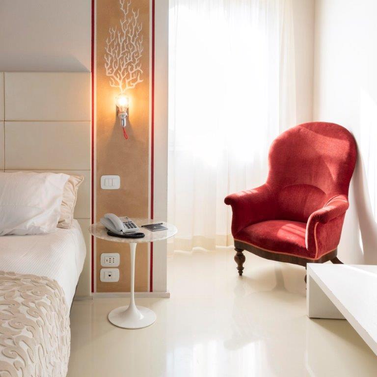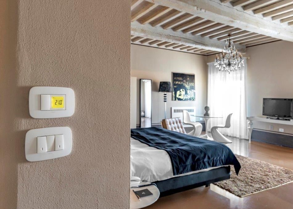 Particolare è anche la dotazione tecnologica: l’impianto elettrico è infatti stato recentemente rinnovato e integrato con il sistema domotico By-me di Vimar. Una soluzione che consente di automatizzare le camere offrendo la possibilità di supervisionarle direttamente dalla reception. Luci, clima e automazioni di ogni singola stanza possono così essere gestiti localmente dall’ospite o regolati centralmente tramite il tablet presente nella reception. Questo grazie al web server Vimar, un dispositivo che permette di controllare l’intero sistema domotico anche da remoto attraverso l’intuitiva app By-web, che consente ai titolari e al personale di avere sempre sotto controllo l’intera struttura.