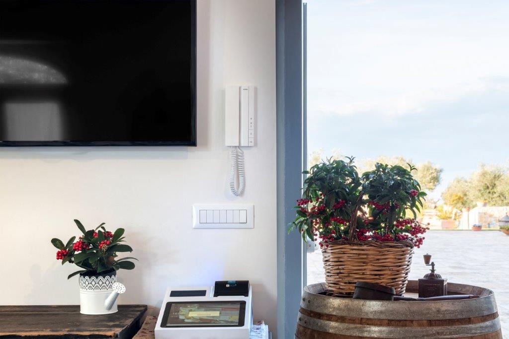 Il sistema By-me Plus permette poi di gestire anche altre funzionalità, come gli accessi alle Dimore Angiulli, tramite l’apertura anche da remoto del cancello principale, garantendo massima sicurezza e tranquillità ai proprietari e mettendo la tecnologia al completo servizio del cliente. Le funzioni sono controllate e gestite comodamente attraverso la rinnovata app View di Vimar,.