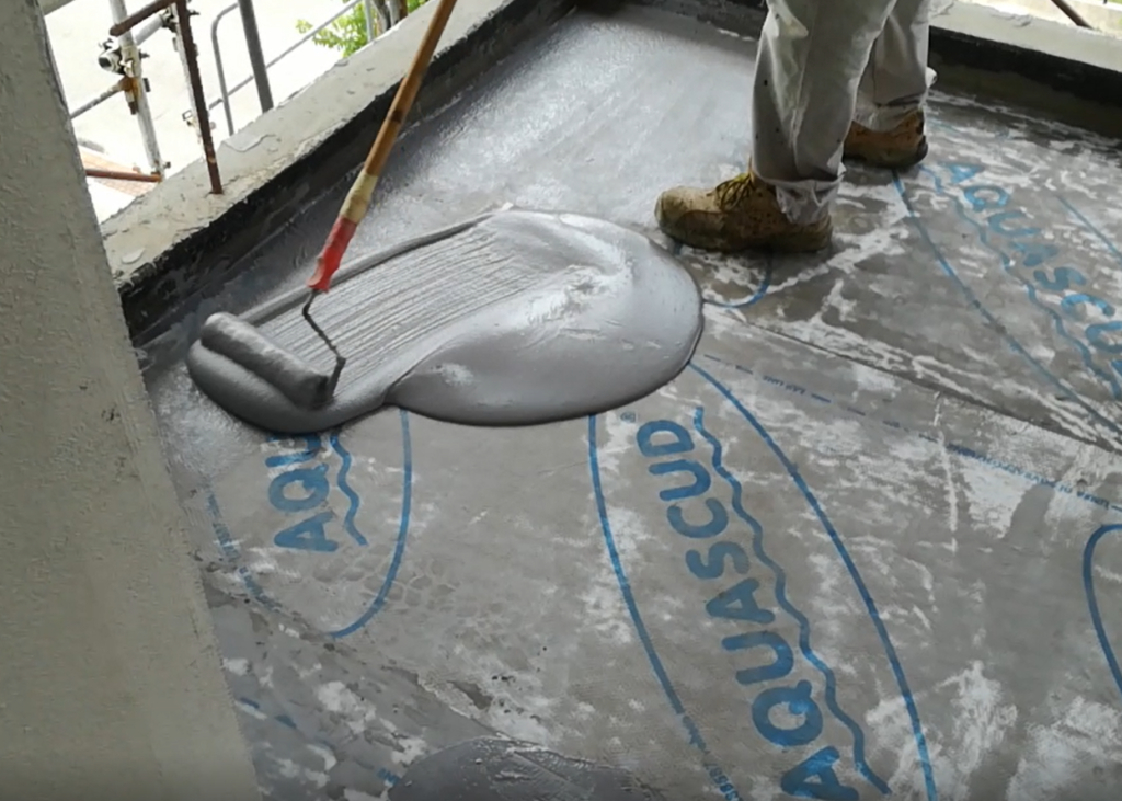 Il sistema Aquascud 420 è brevettato per impermeabilizzare senza necessità di alcuna demolizione e in ogni condizione terrazzi, balconi, marciapiedi, lastrici solari e tutte le superfici piane, anche in presenza di pavimentazione. Il sistema è composto da differenti elementi: Aquascud 420, impermeabilizzante flessibile bicomponente altamente elastico, Aquascud Join, banda coprifilo elasticizzata, Aquascud Line, profilo gocciolatoio drenante e Aquascud Basic, membrana idrorepellente microporosa elasticizzata in polipropilene con superficie ruvida che assicura una elevata adesione al componente impermeabilizzante.