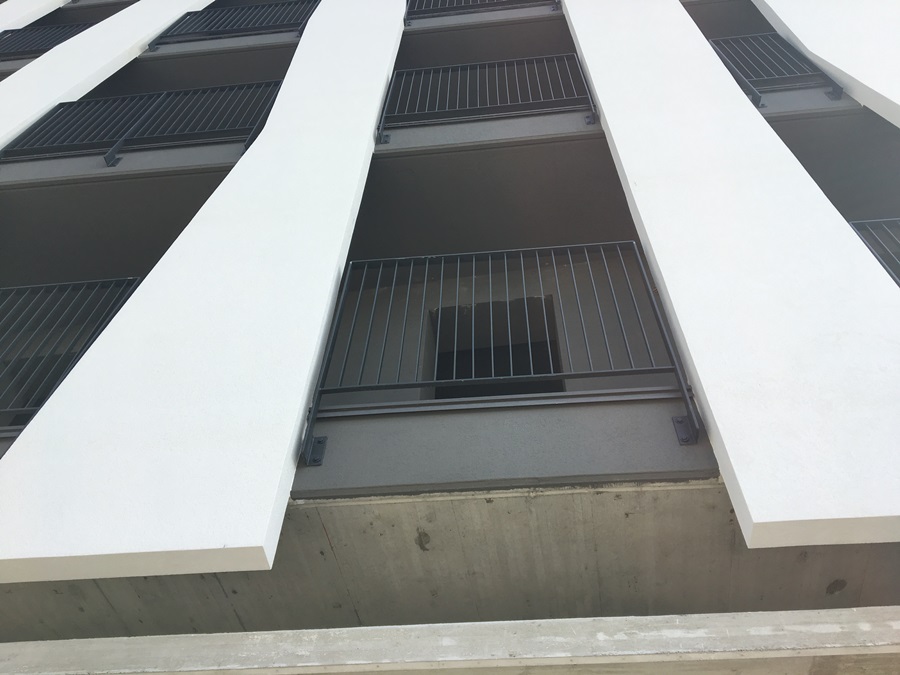 Per risolvere le problematiche legate all’impermeabilizzazione e allo smaltimento dell’acqua da balconi e verande sono stati scelti i prodotti Plastivo 180, rivestimento elastico ed impermeabile e Aquascud Line, profilo drenante dotato di doppio gocciolatoio per un’impermeabilizzazione elastica in grado di sopperire ai micromovimenti del supporto dovuti alle dilatazioni termiche, integrata con un profilo drenante specifico per smaltire l’acqua senza danneggiare i frontini dell’edificio.