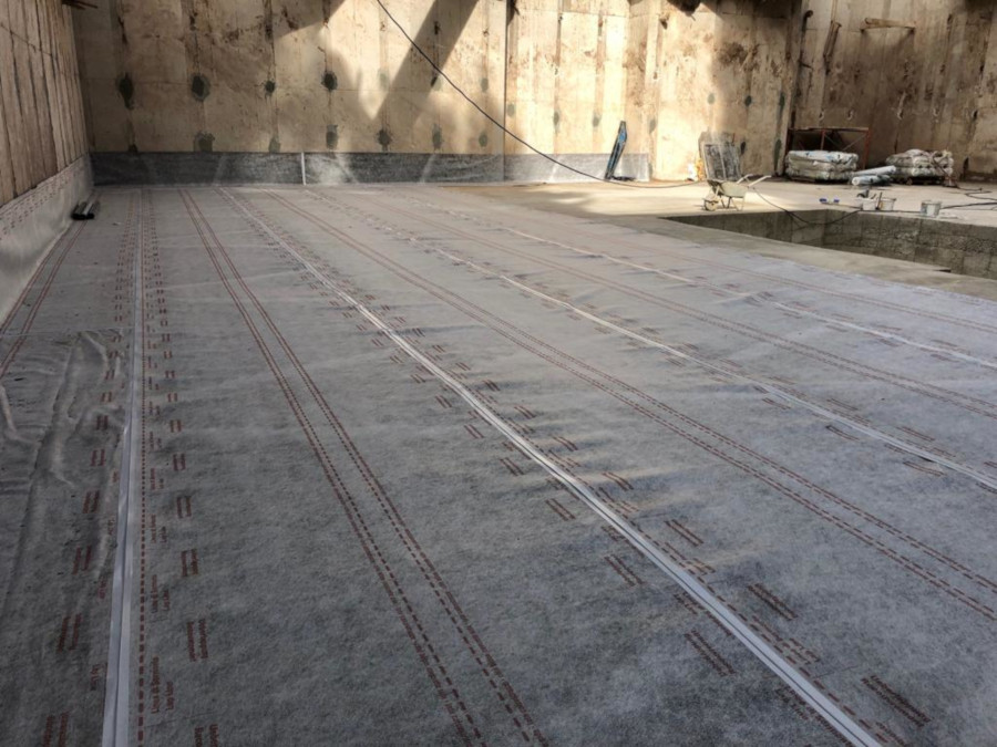 Si è proceduto all’impermeabilizzazione pregetto della platea e delle pareti prevedendo la posa di Amphibia orizzontalmente sul magrone di pulizia e verticalmente sulle pareti mediante chiodatura, sfruttando anche la capacità autosigillante dei teli.