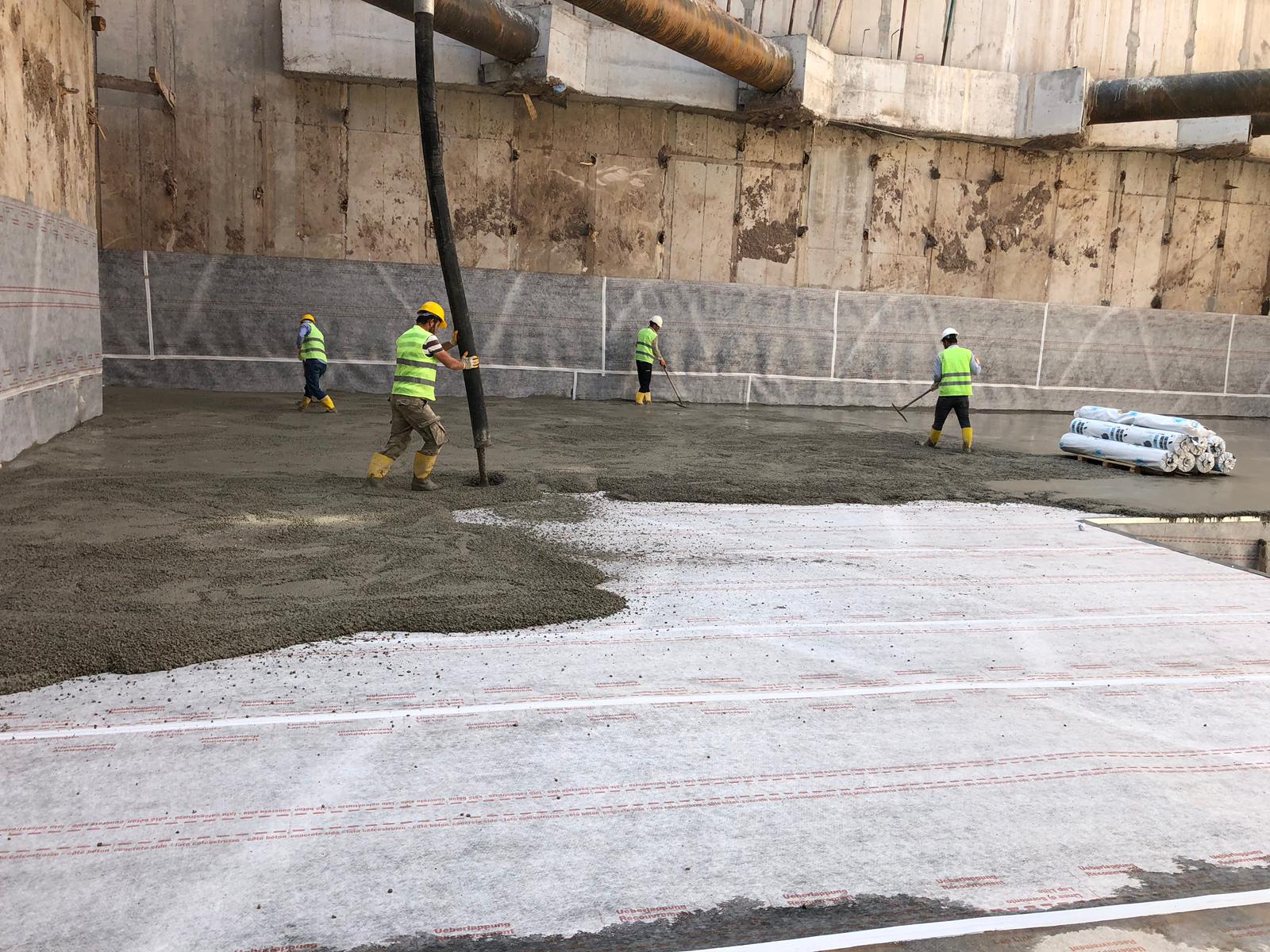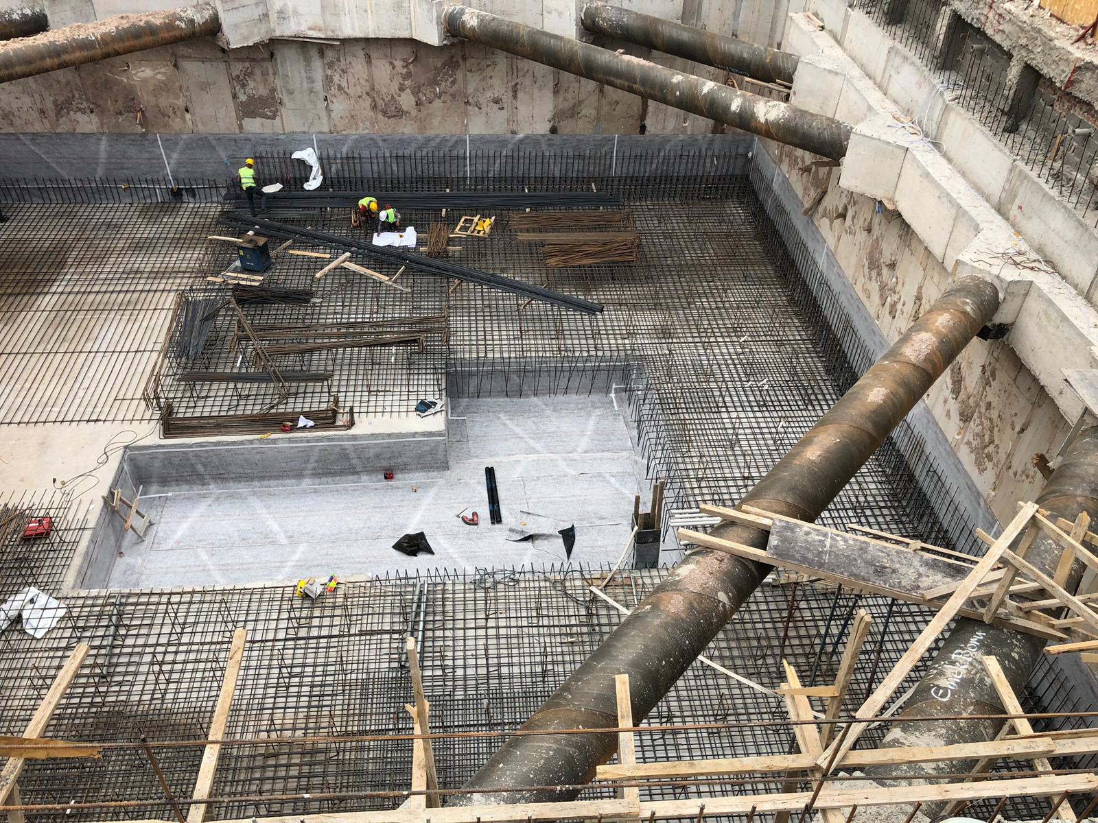 Successivamente alla posa dei teli e delle armature sono state realizzate la platea e le pareti procedendo dal basso verso l’alto; anche in questo caso la posa è avvenuta non integralmente alla realizzazione delle strutture ma contestualmente all’esecuzione delle stesse dal basso verso l’alto.