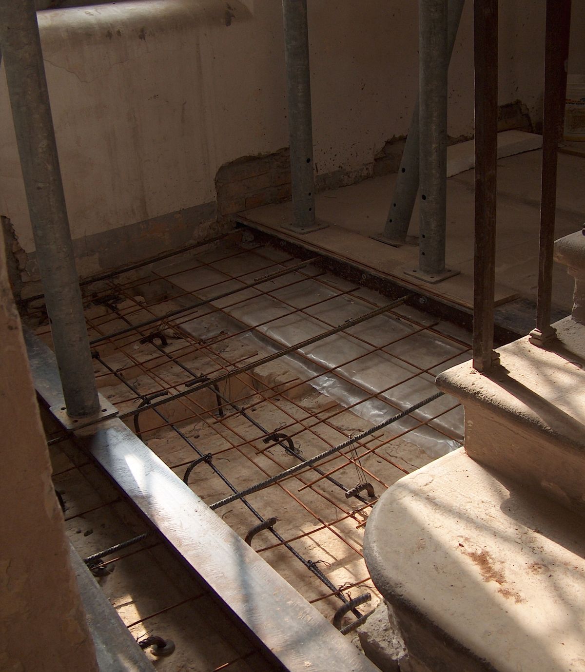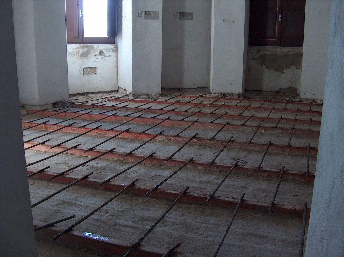 Il piano di appoggio della Cappella e del Duomo è una soletta in calcestruzzo, staccata dalle murature antiche, isolata dall’umidità di risalita con apposito telo, finita in battuto e, a sua volta isolata dal terreno con tessuto non tessuto.