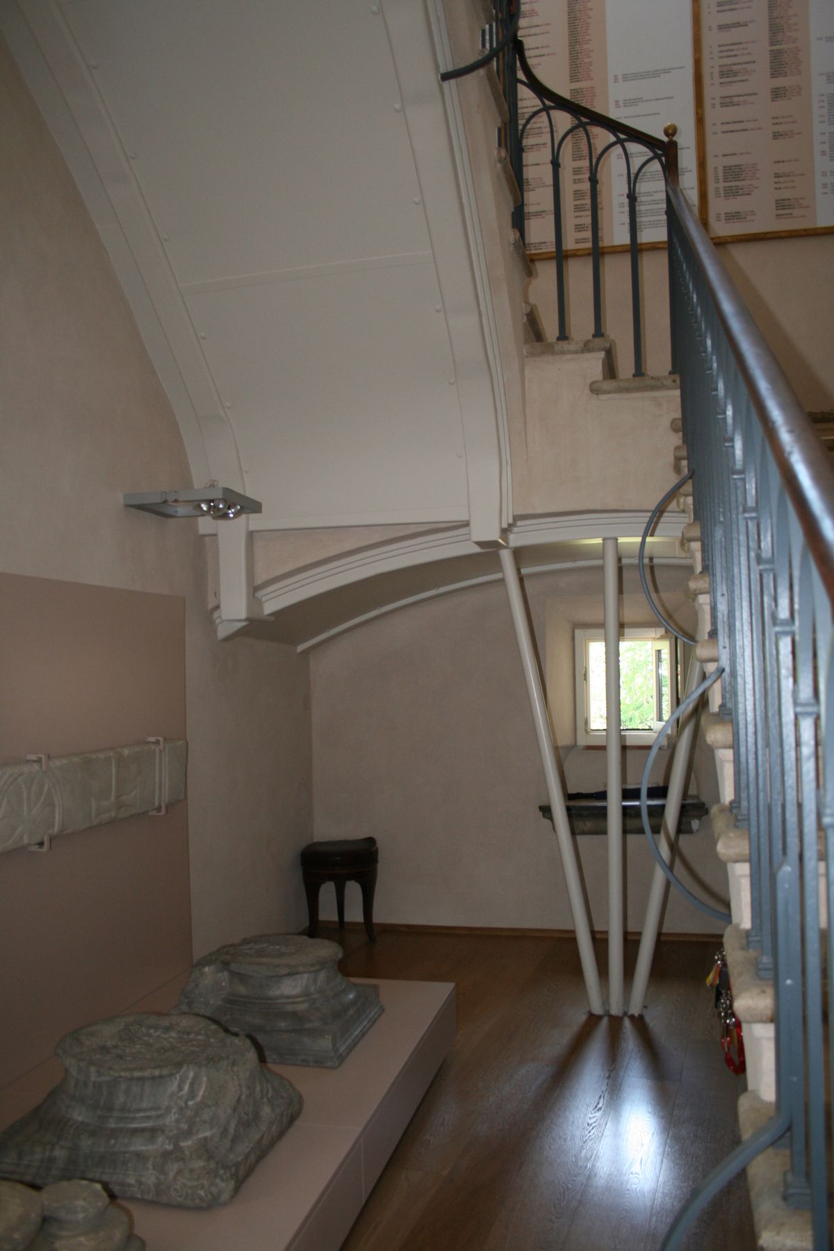 L’impiantistica. La dotazione degli impianti di riscaldamento a pavimento, solo per le parti a museo, ed elettrico è stata realizzata nello spessore dei solai. Le quote di piano sono rimaste le stesse, mentre le parti in risalita sono collocate in passaggi esistenti o vecchie canne fumarie. È importante sapere che le murature verticali sono state preservate nella loro interezza collocando gli elementi impiantistici, come i termostati, incassati nella muratura in pochissimi punti.
