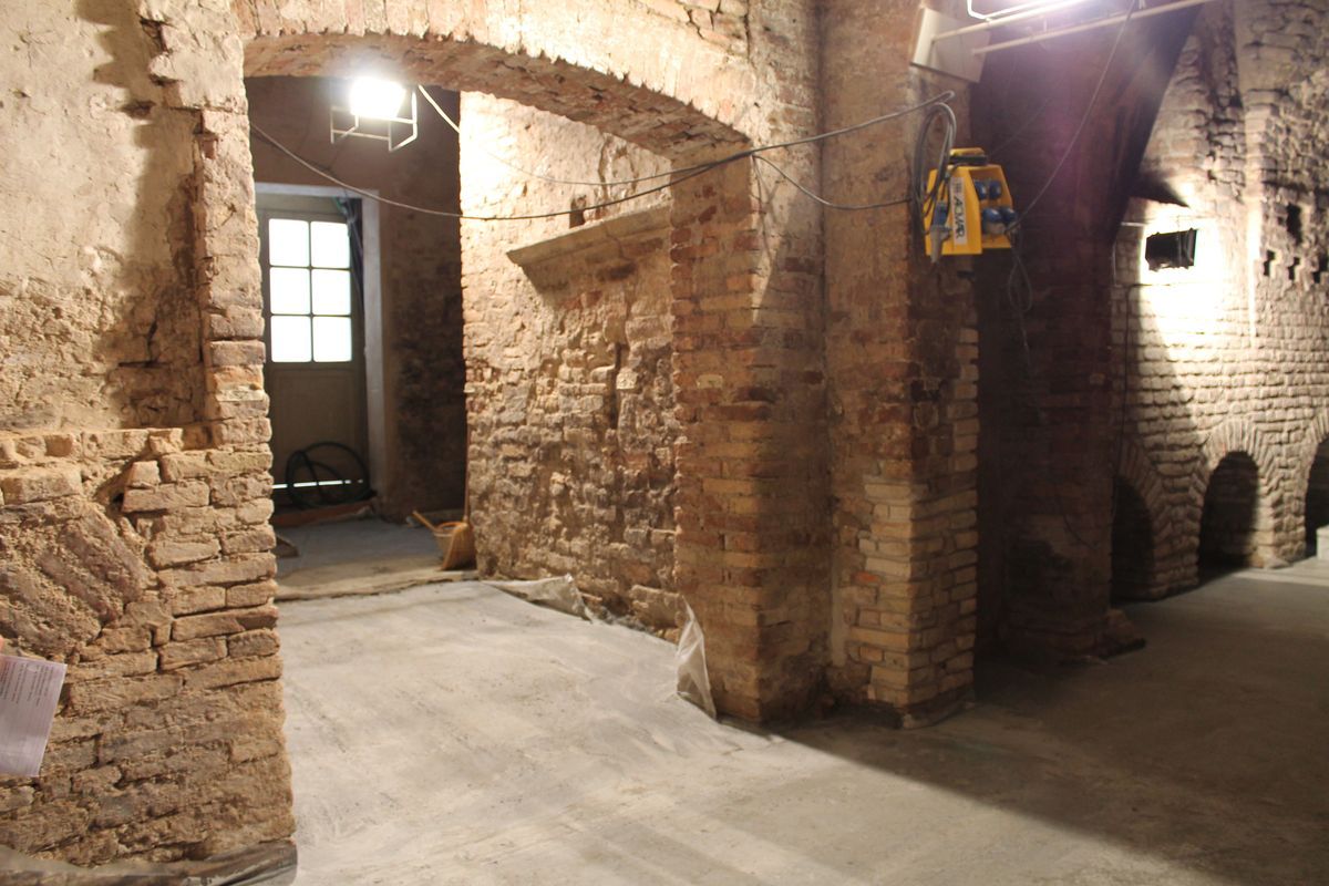 La zona sulla quale appoggia la sala delle lapidi, al primo piano, è costituita da volte di epoca bizantina, parte del Vivarium e murature romane. Qui è stato realizzato un intervento di consolidamento delle volte dall’alto con iniettori in acciaio, cappa con rete e dal basso di iniezioni tra mattone e mattone di apposite malte, pulitura degli stessi, stuccatura delle fughe e collegamento con le strutture verticali. Inoltre sono state realizzate opere puntuali a sostegno di quelle murature alle quali mancavano gli appoggi.