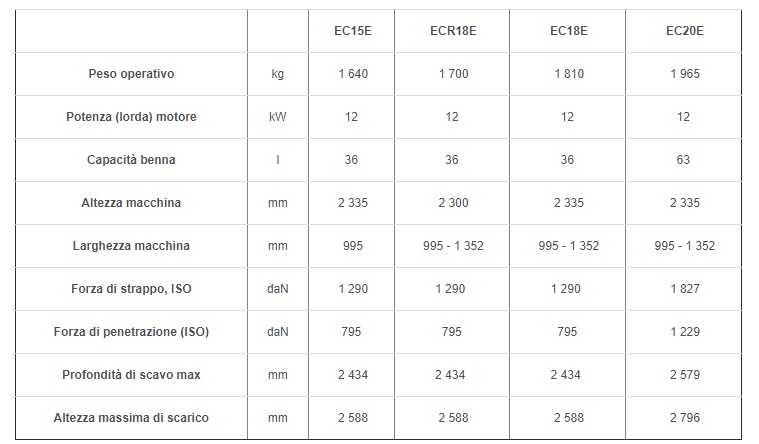 L’EC18E e l’EC20E portano le prestazioni a un nuovo livello, con un aumento della forza di trazione del 13 % e con forze di scavo combinate rispettivamente di 2130 kg e 3120 kg. La capacità di sollevamento cresce in media del 22 % (anteriormente) rispetto alla Serie D che queste macchine sostituiscono, e di un ulteriore 7 % (lateralmente) sul modello EC20E.