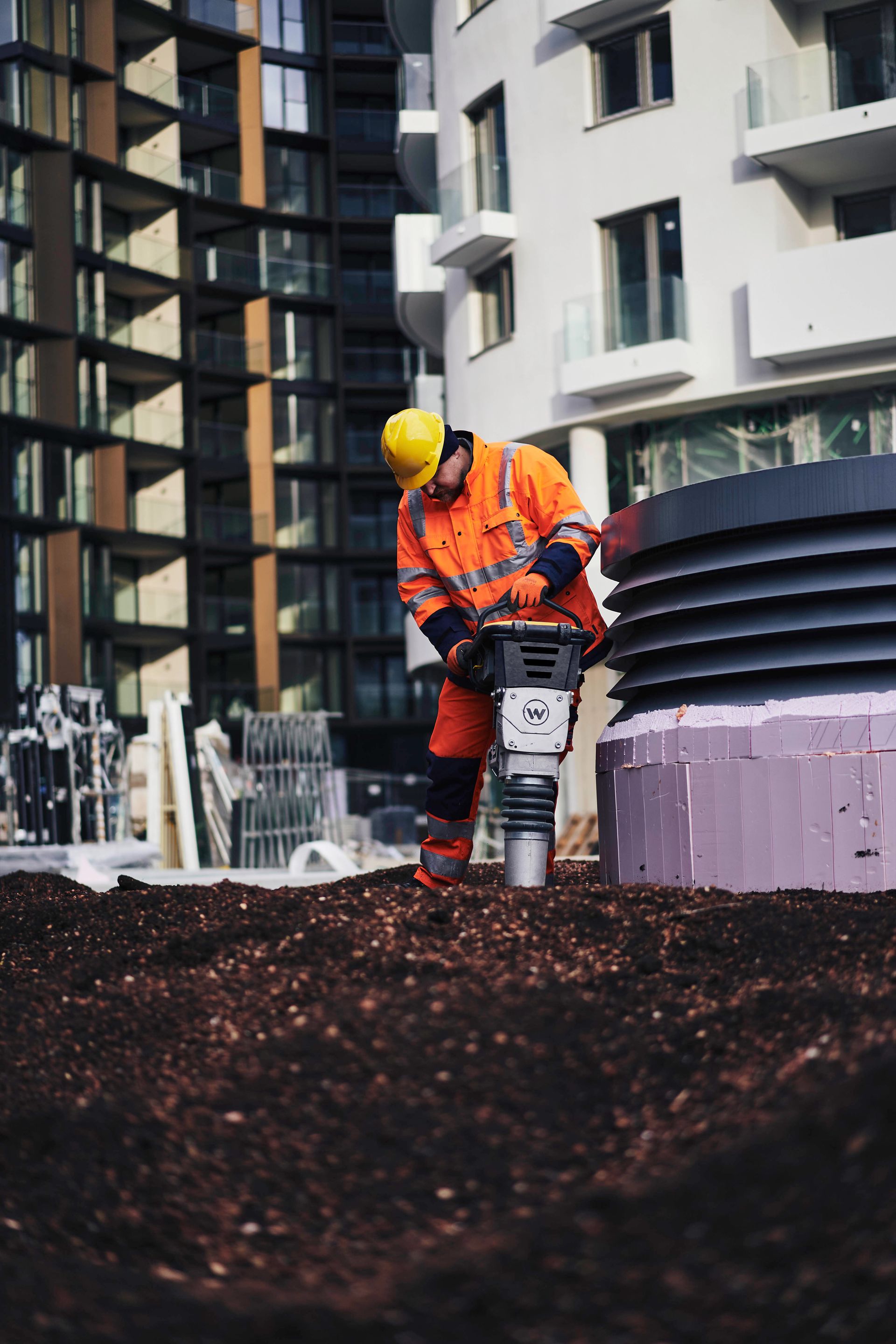 Per la compattazione del suolo sono stati utilizzati il costipatore a batteria AS60e e due piastre vibranti a batteria. Inoltre, il vibratore interno ad alta frequenza IEe ha compattato in modo affidabile il calcestruzzo per le fondamenta del parco giochi.