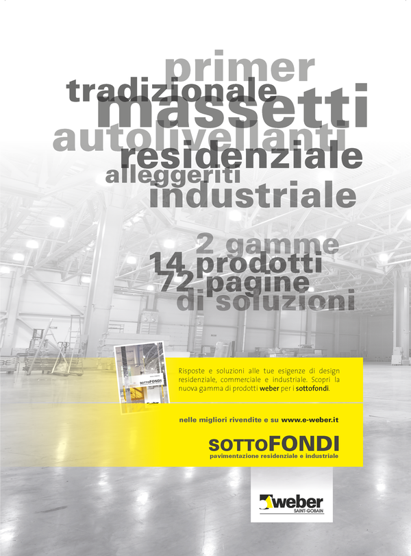 Weber Saint-Gobain >> rilancia la sua linea di prodotti per sottofondi sia per l’ambito residenziale sia per l’industriale, rinnovando la gamma di prodotti weber.floor per le malte autolivellanti e weber.plan per i massetti a consistenza «terra umida».