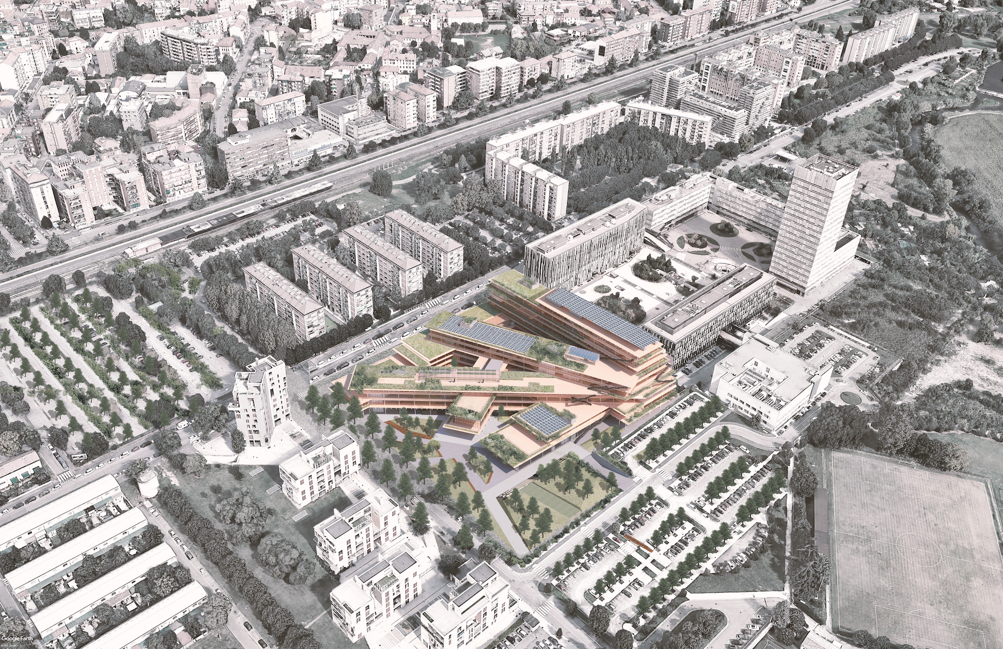 Zero emissioni CO2, energie rinnovabili, controllo dei consumi, recupero dell’acqua, il verde e le specie endemiche come parte integrante del progetto architettonico, scala umana e sensoriale sono solo alcuni degli elementi che andranno a caratterizzare Welcome. Un progetto connettivo tra le varie entità urbane adiacenti (area Rizzoli) e il paesaggio, che contrappone alla verticalità esistente l’accessibilità e la permeabilità, e si propone di rigenerare un contesto ad oggi ritenuto periferico. Oltre 50.000 metri quadri di GLA, strutturati in sei corpi inondati di luce naturale e flessibili, stratificati, ruotati e intrecciati tra loro, che digradano come anfiteatri naturali verso il Parco. La struttura di Welcome vede l’utilizzo di tre materiali d’elezione, coniugati in maniera sinergica per generare un’architettura naturale e contemporanea: calcestruzzo per le fondamenta e l’interrato, che fuori terra lascia la scena ad acciaio e legno.