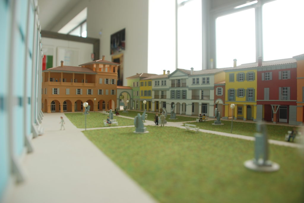 «Il punto di partenza del progetto – sottolinea l’Ing. Venturi che firma il progetto insieme agli ingegneri Fabio Paoletti e Fabrizio Campanini – è la piazza. Piazza intesa come luogo di aggregazione e di incontro. Si è pensato di riproporre un brano di città che andasse a completare e raccordare il museo Magi ‘900 con il tessuto urbano di Pieve di Cento, attraverso la creazione di un “giardino delle arti” nel quale tutti possono incontrarsi e passeggiare perché protetto da portici e popolato di opere. Per questo il progetto urbanistico nasce unitario. Gli edifici residenziali, come nelle migliori piazze delle città tradizionali italiane ed europee, cingono il giardino delle arti creando una quinta scenica ma discreta alla galleria d’arte e alle sue opere che escono dal museo andando ad animare la grande piazza giardino».