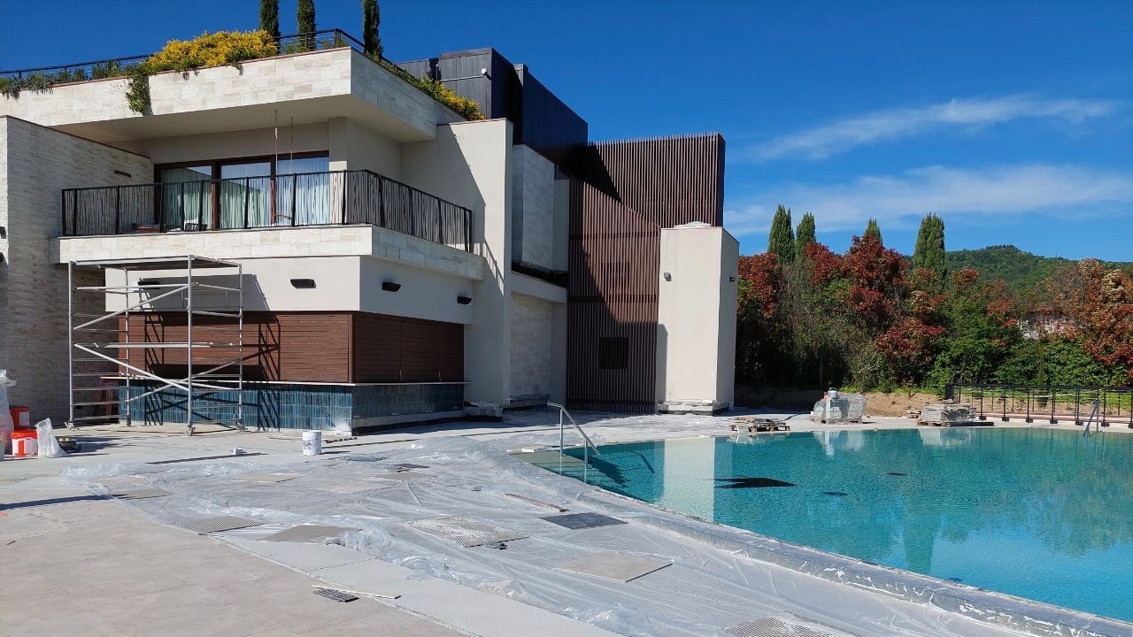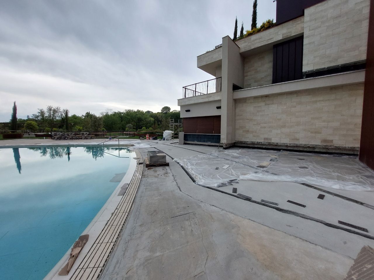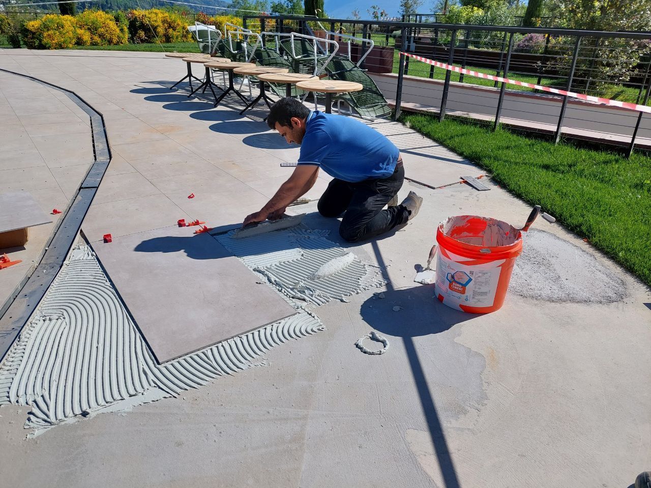 L’hotel, situato in una splendida posizione panoramica con vista sul basso Lago di Garda, è dotato di finiture di lusso e una gamma completa di comfort. All’esterno, oltre alle zone ristoro, è stata realizzata una piscina con un solarium piastrellato. Per la posa delle piastrelle si è optato per Bond Cement, un prodotto bicomponente rapido a base cementizia, classificato come adesivo secondo la norma EN 12004 C2TES2 e come impermeabilizzante CM02P secondo la norma UNI EN 14891. Questo adesivo impermeabilizzante è stato scelto per le sue elevate caratteristiche di resistenza ed elasticità, ideali per la posa di pavimenti ceramici sia in ambienti esterni (balconi, piscine) che interni (bagni, cucine).