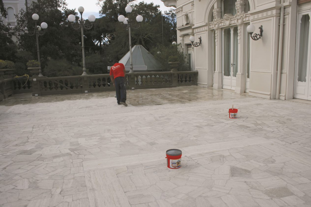 Skermo Terrazze, inoltre, svolge una importante azione preventiva verso la formazione di muschi, batteri e l’affioramento di efflorescenze, e impedisce anche il fissaggio sulle superfici trattate di polvere, fuliggine e inquinamento atmosferico in genere. Parallelamente, l’efficacia della sua azione protettiva si estende anche ai fenomeni di naturale invecchiamento e sgretolamento dovuti agli sbalzi delle temperature, nonché alla penetrazione di agenti aggressivi e salini, risultando quindi indicato all’utilizzo anche in zone marine, grazie alla sua particolare stabilità al pH alcalino.