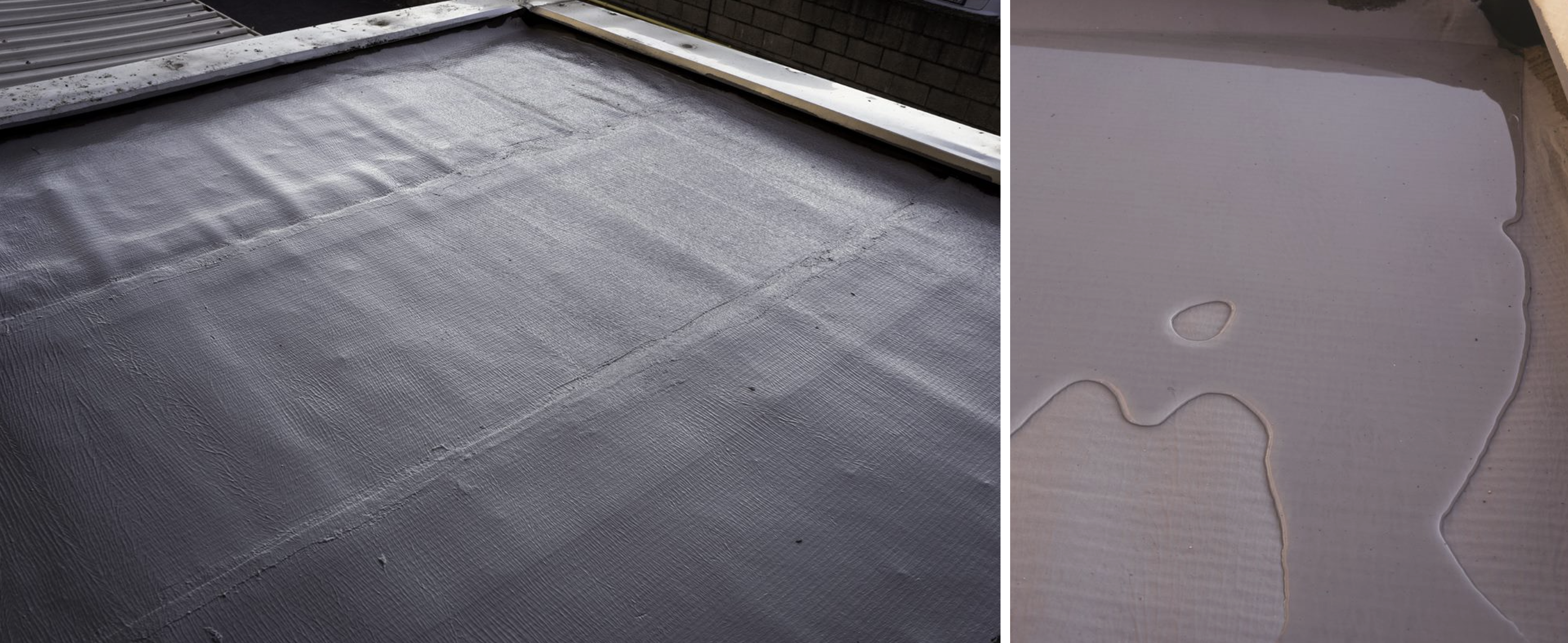 2000 Plus grigio su membrana liscia. Come si vede nella foto a destra, 2000 Plus protegge dai ristagni d’acqua (foto Winkler)