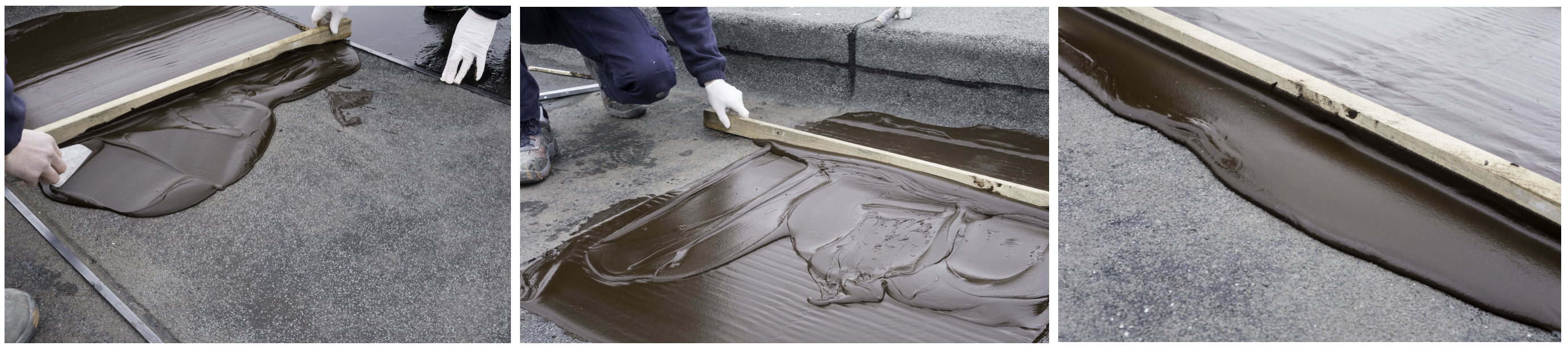 Come si accennava più sopra, difficilmente la superficie di un tetto che necessita di ristrutturazione si presenta perfettamente uniforme. Il “Sistema Wingum Plus H2O” prevede quindi l’utilizzo, su membrane bituminose preesistenti, anche ardesiate, della pasta livellante monocomponente Win Bituroof. Il prodotto è a base di speciali bitumi in dispersione acquosa, pronto all’uso – non si devono quindi aggiungere acqua o solventi, e nemmeno additivi – eccezionalmente facile da lavorare e posare (con staggia, cazzuola o spatola metallica liscia e per spessori da 2 a 15 millimetri per mano, fino a un massimo 4 centimetri) – che viene utilizzato proprio per uniformare e riparare i supporti bituminosi e membrane bituminose lisce ma anche ardesiate, favorendo così una efficace posa del nuovo sistema impermeabile, liquido o preformato. Win Bituroof viene anche utilizzato con successo nei casi in cui sia opportuno o necessario formare la sguscia di raccordo sugli angoli parete – pavimento.