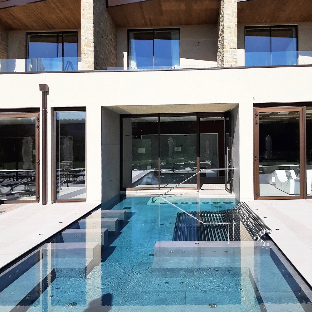 Tutte le piscine (sia interne che esterne) sono riscaldate. Ad esempio la piscina interna è riscaldata 24 ore su 23 e ha una temperatura di 32°, mentre nel centro benessere troviamo un impianto radiante caldo-freddo a pavimento ed aria primaria di rinnovo. Sono state inserite anche delle vasche idromassaggio nelle suite con impianto radiante a pavimento ad integrazione.