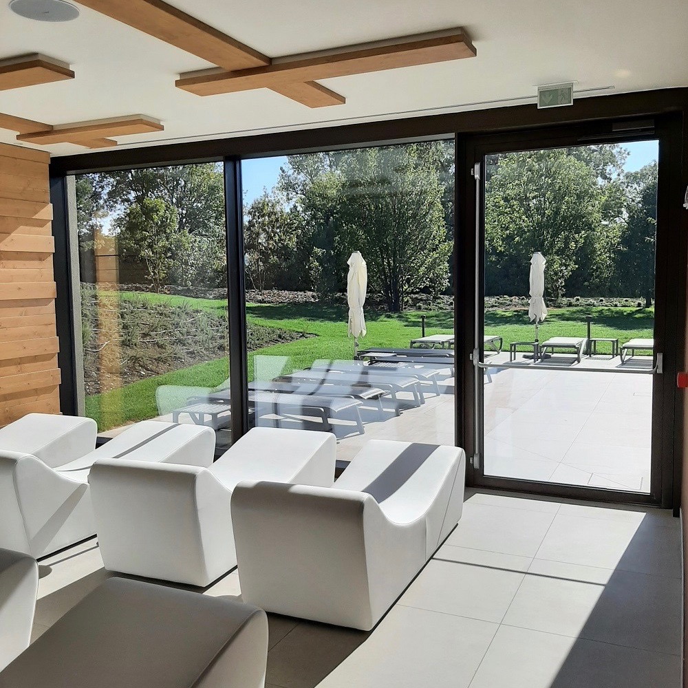 Il progetto di WiP Architetti ha previsto la realizzazione delle suites e di una SPA. L’area wellness è così composta: centro benessere, area relax, bagno vapore, sauna, cabina del fieno, centro trattamento massaggi e area ristoro. Il team di progettisti ha ristrutturato la zona spogliatoi realizzando un nuovo layout e creando nella zona esterna una piscina.
