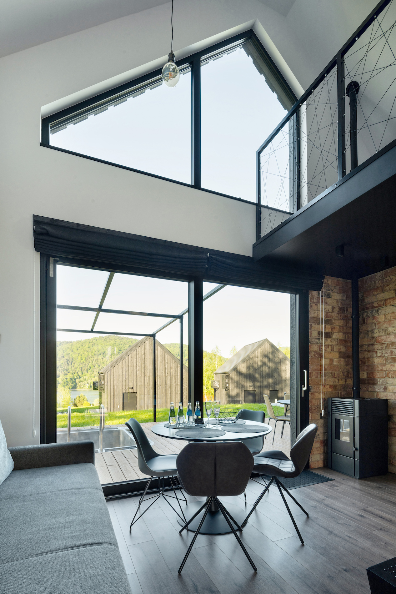 Il resort di lusso ‘Czarna Chata’ ovvero ‘Case nere’ è un complesso di 4 case vacanze di lusso dotate di ogni comfort che sorge a soli 100 metri dal lago Klimkowskie che si inserisce in un paesaggio caratterizzato dalla gola del fiume Ropa conosciuta come ‘Gorlickie Pieniny’.