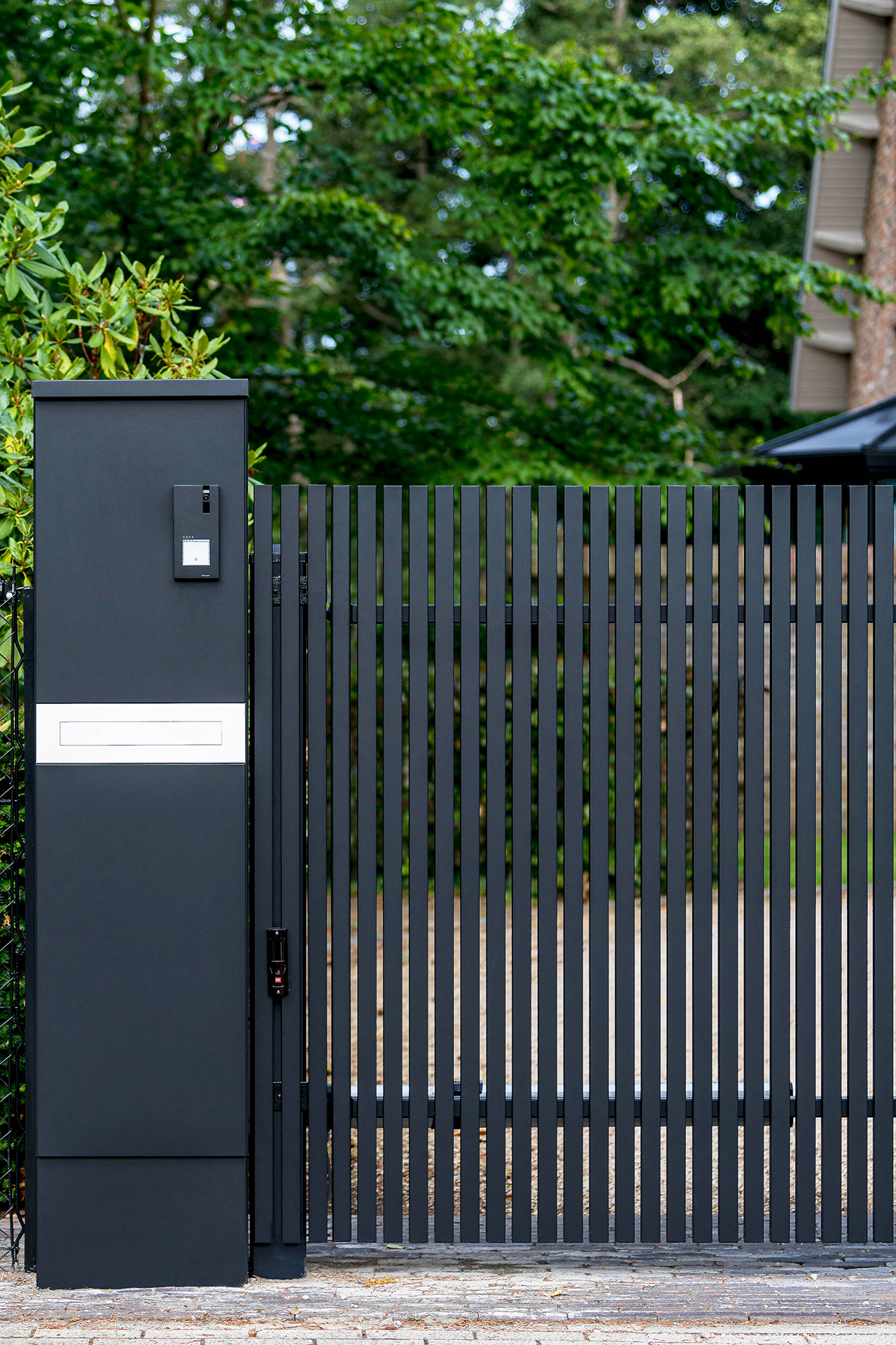 La grande funzionalità dell’installazione è raggiunta anche grazie all’integrazione nel cancello del palo MultiBox che, contenendo la cassetta per le lettere, il videocitofono e il tastierino a codice per la funzione di comando elettronico, rappresenta un filtro sicuro rispetto all’esterno, rendendo l’accesso all’edificio perfettamente controllato.